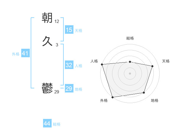 朝久 鬱さんを姓名の画数から五運を鑑定