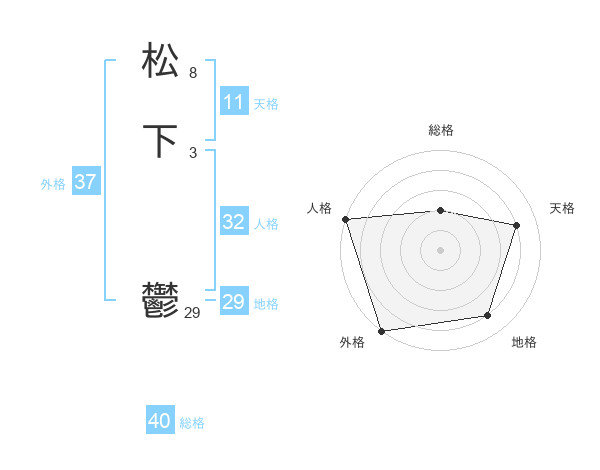 松下 鬱さんの外格は37画の5点!
