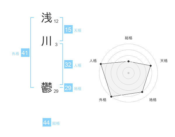 浅川 鬱さんの天格は15画の4点!