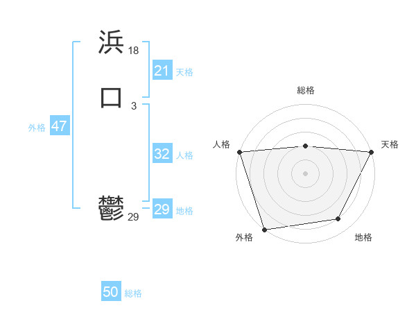 浜口 鬱さんの総格は50画の2点!