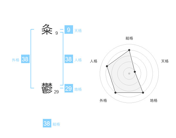 粂 鬱さんの総格は38画の4点!