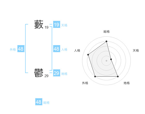 藪 鬱さんの総格は48画の4点!