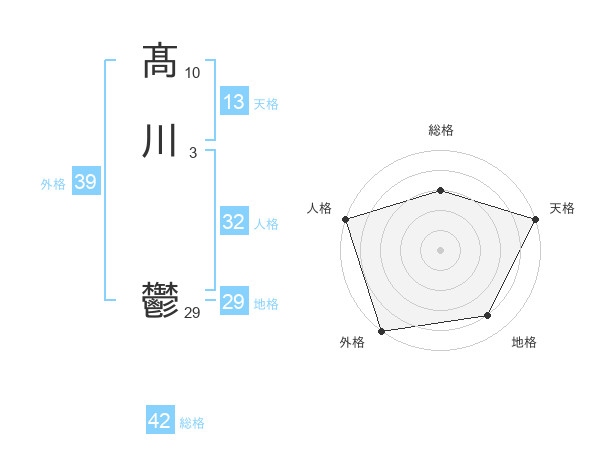 髙川 鬱さんの外格は39画の5点!