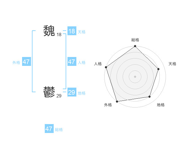 魏 鬱さんの総格は47画の5点!