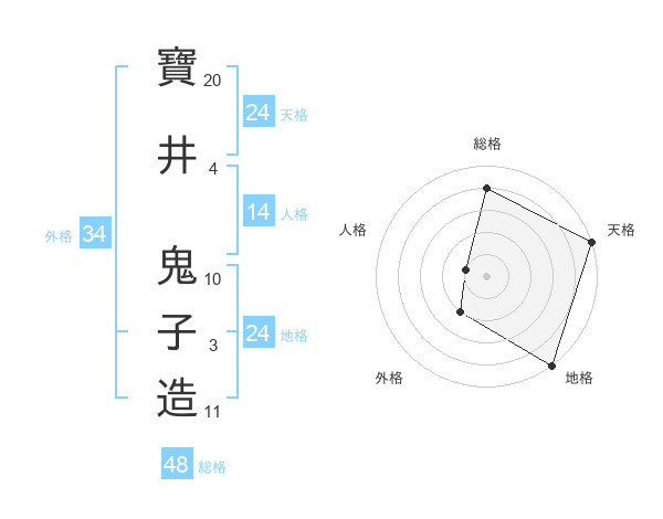 寶井 鬼子造さんを姓名の画数から五運を鑑定