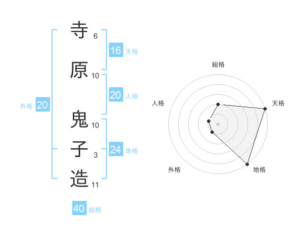 寺原 鬼子造さんを姓名の画数から五運を鑑定