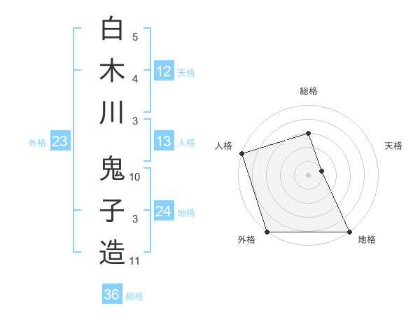 白木川 鬼子造さんを姓名の画数から五運を鑑定