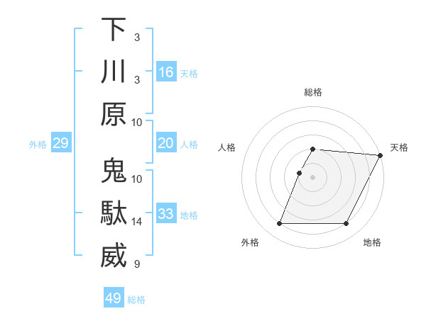 下川原 鬼駄威さんの名前の鑑定結果は!