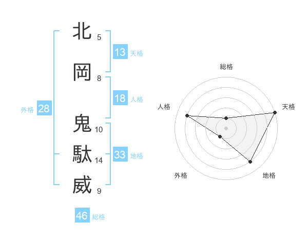 北岡 鬼駄威さんを姓名の画数から五運を鑑定