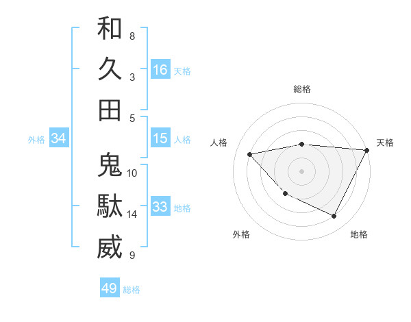和久田 鬼駄威さんを姓名の画数から五運を鑑定