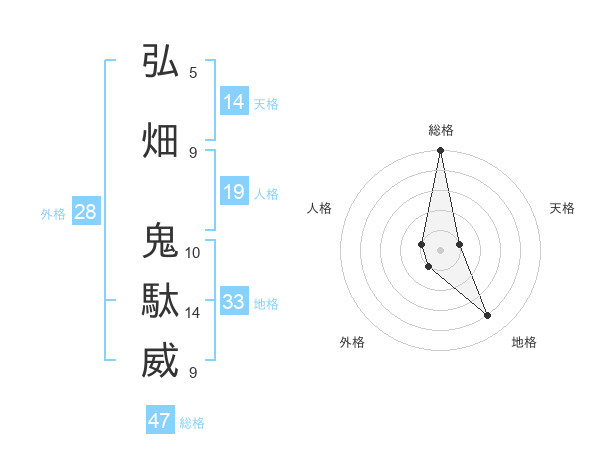 弘畑 鬼駄威さんの総格は47画の5点!