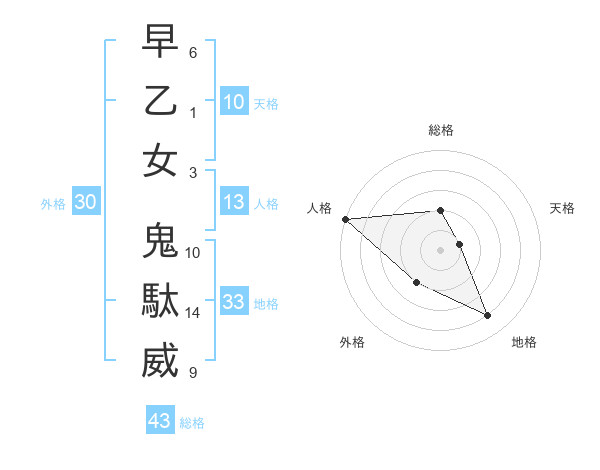 早乙女 鬼駄威さんを姓名の画数から五運を鑑定