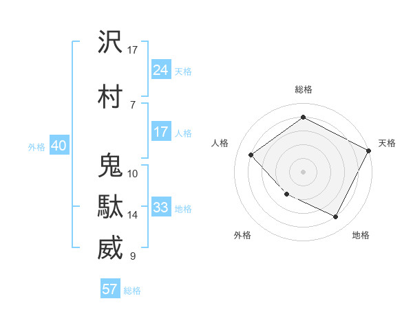 沢村 鬼駄威さんを姓名の画数から五運を鑑定