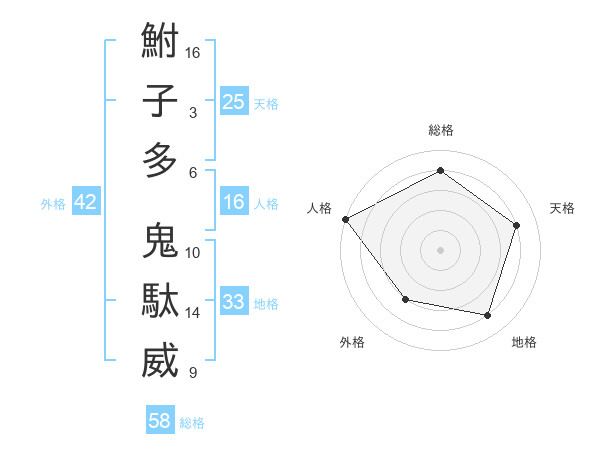 鮒子多 鬼駄威さんの総格は58画の4点!