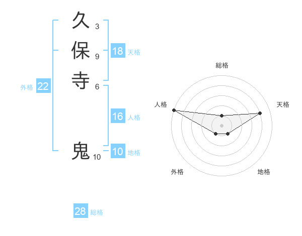 久保寺 鬼さんを姓名の画数から五運を鑑定