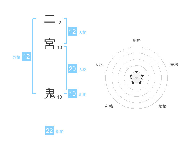 二宮 鬼さんを姓名の画数から五運を鑑定