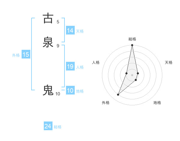 古泉 鬼さんの総格は24画の5点!