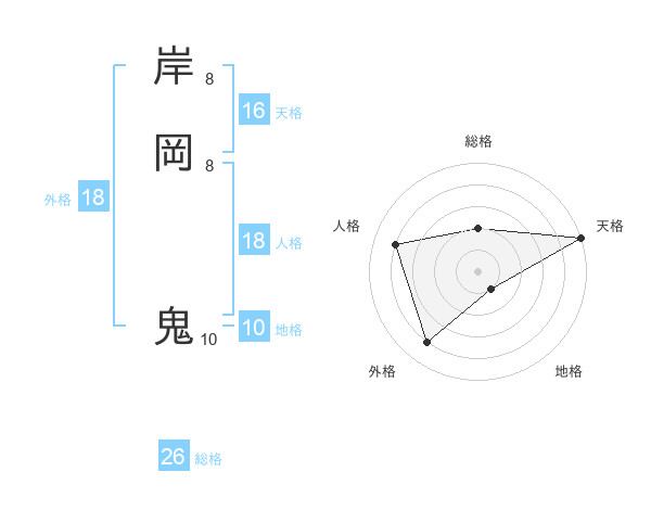 岸岡 鬼さんの総格は26画の2点!