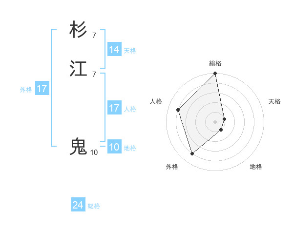 杉江 鬼さんの総格は24画の5点!