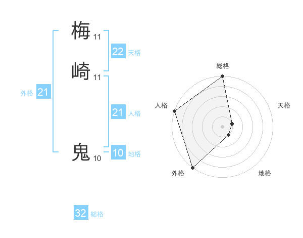 梅崎 鬼さんの外格は21画の5点!