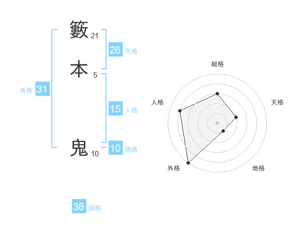 籔本 鬼さんの外格は31画の5点!