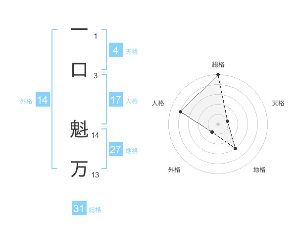 一口 魁万さんの外格は14画の1点!