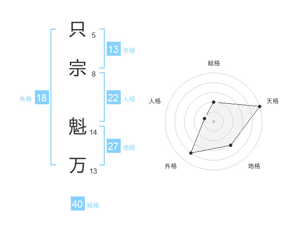 只宗 魁万さんの天格は13画の5点!