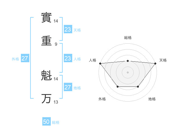 實重 魁万さんの天格は23画の5点!