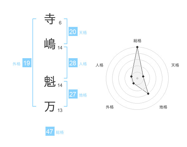 寺嶋 魁万さんの総格は47画の5点!