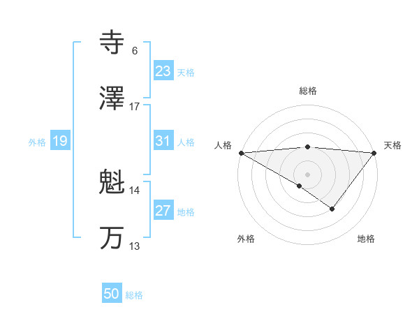 寺澤 魁万さんを姓名の画数から五運を鑑定