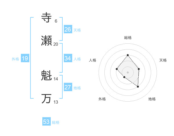 寺瀬 魁万さんを姓名の画数から五運を鑑定