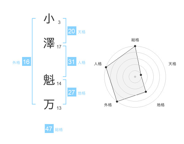 小澤 魁万さんを姓名の画数から五運を鑑定