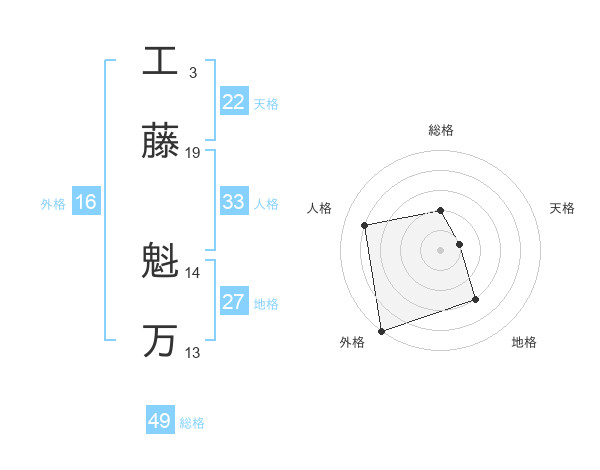 工藤 魁万さんを姓名の画数から五運を鑑定