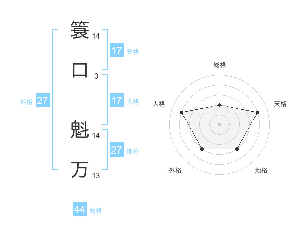 簑口 魁万さんの総格は44画の2点!
