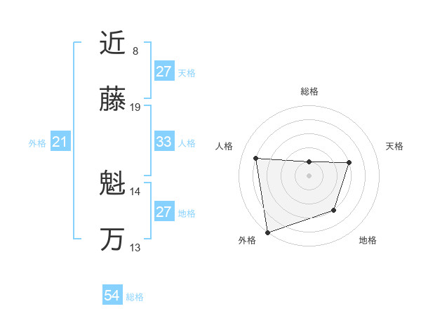 近藤 魁万さんを姓名の画数から五運を鑑定