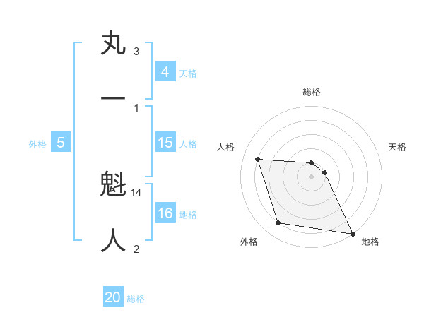 丸一 魁人さんを姓名の画数から五運を鑑定