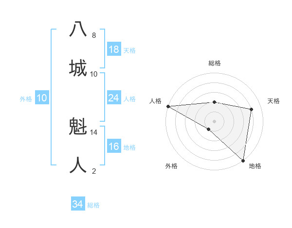 八城 魁人さんの天格は18画の4点!