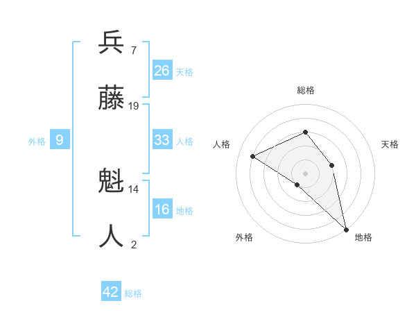 兵藤 魁人さんの総格は42画の3点!
