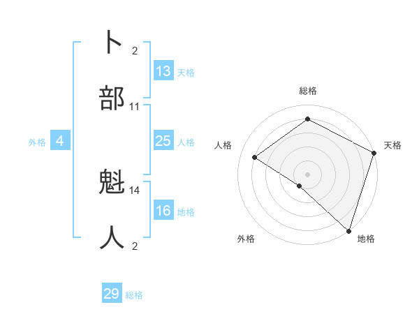 卜部 魁人さんの総格は29画の4点!