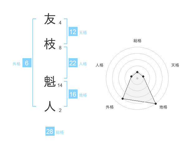 友枝 魁人さんの天格は12画の1点!