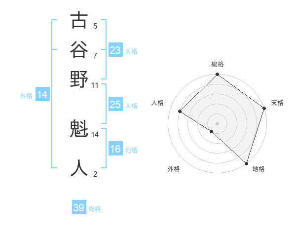 古谷野 魁人さんの総格は39画の5点!