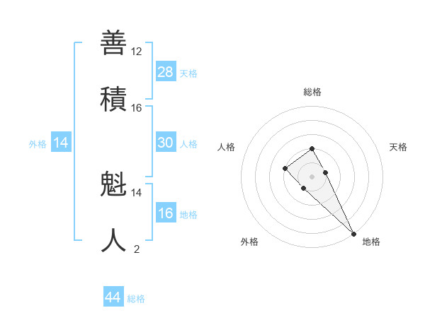 家系が持つ宿命的な運勢を表します。祖先から受け継いだ苗字ですので自分の力が及びません。家柄を象徴します。