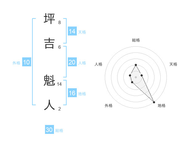 坪吉 魁人さんを姓名の画数から五運を鑑定