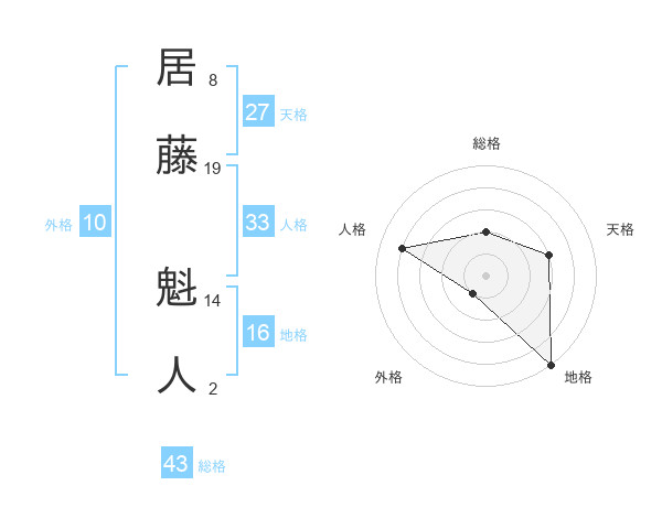 居藤 魁人さんの総格は43画の2点!
