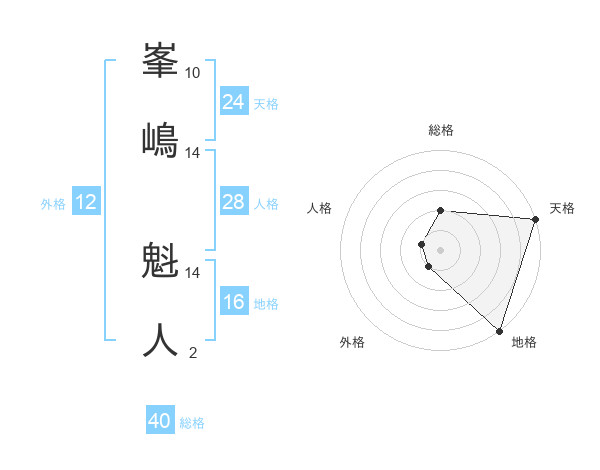 峯嶋 魁人さんを姓名の画数から五運を鑑定