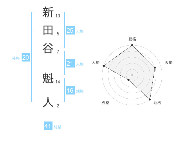 新田谷 魁人さんの総格は41画の5点!