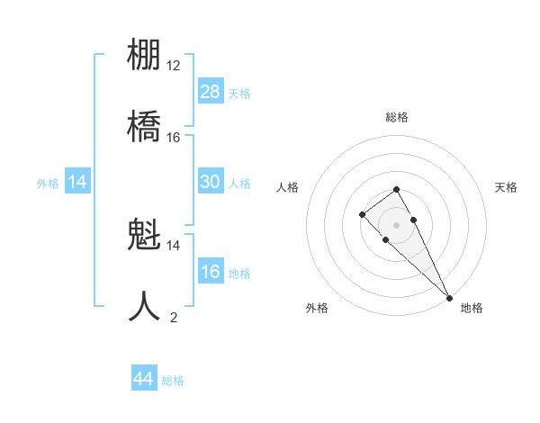 棚橋 魁人さんを姓名の画数から五運を鑑定