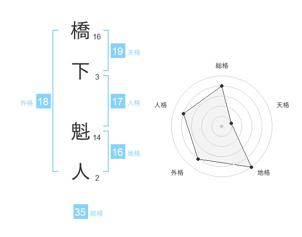 橋下 魁人さんを姓名の画数から五運を鑑定