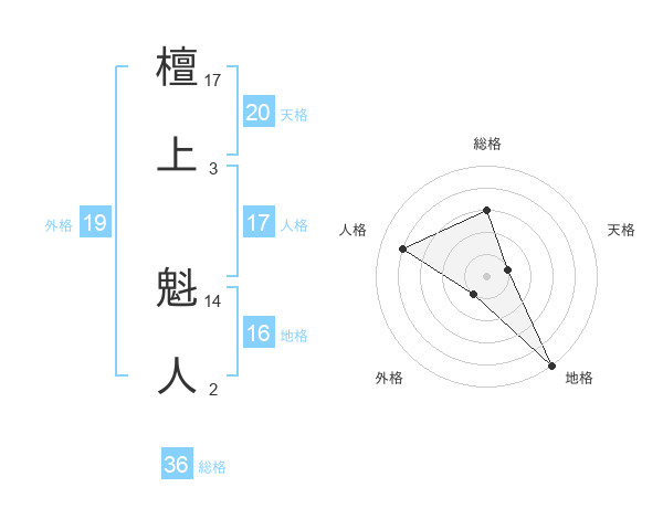 檀上 魁人さんの天格は20画の1点!