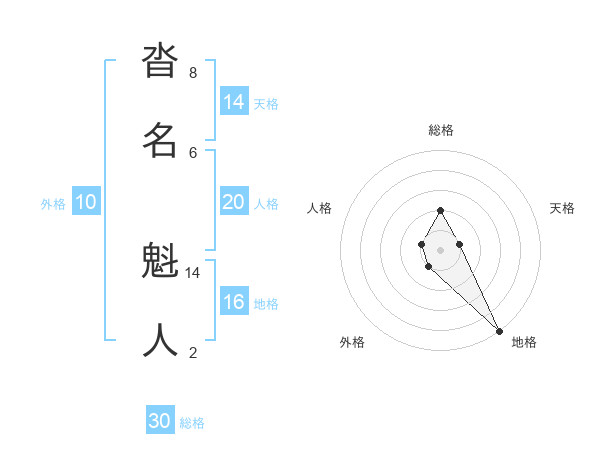 沓名 魁人さんを姓名の画数から五運を鑑定